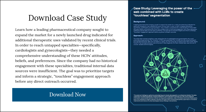 By incorporating external signals—such as opinion pieces, publications, conference insights, and digital activity—and leveraging LLM-driven analysis, companies can uncover the motivations and beliefs behind HCP behaviors. This precision fuels nuanced segmentation, transforming unstructured data into actionable insights.